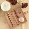 The set of 7 sizes of Single-Ended Interchangeable Crochet Hooks, a wooden handle in rosewood colour and accessories are packed in a premium faux suede fawn fabric case.